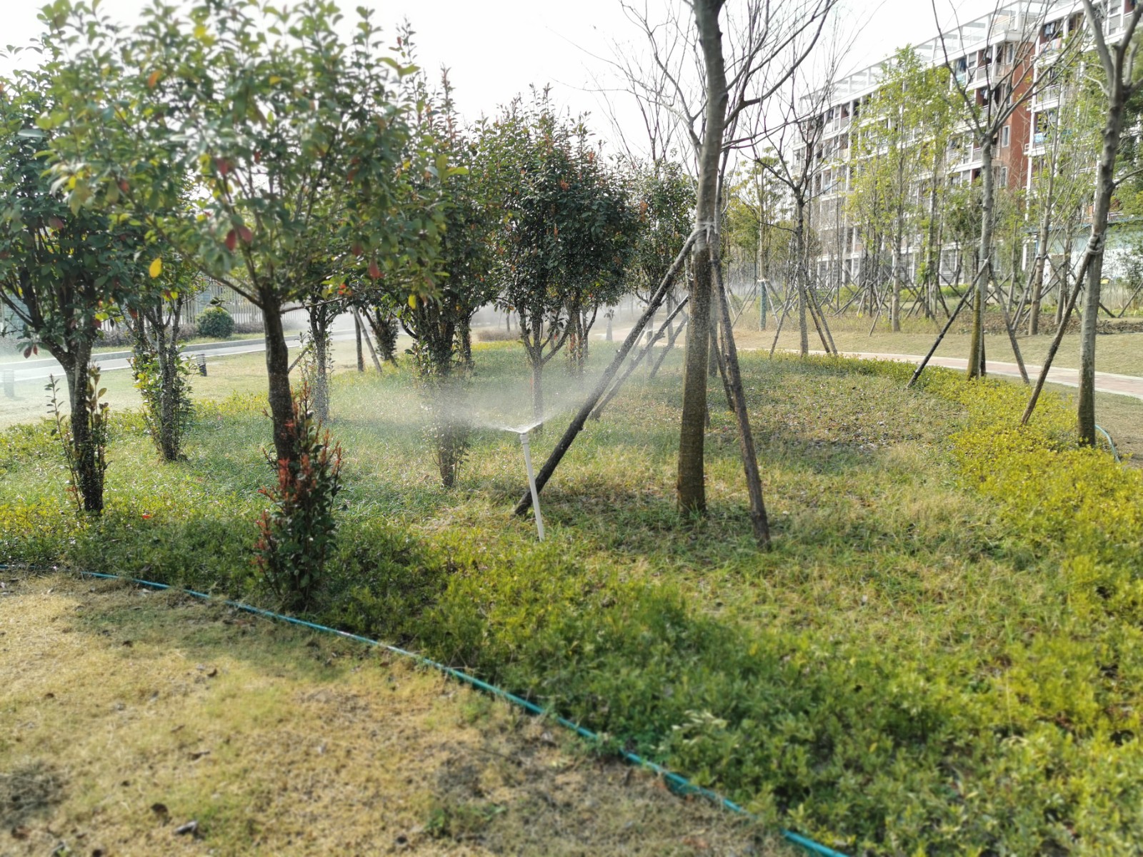 衡阳技师学院南面沿边道路智能喷灌系统安装工程位于湖南省衡阳市,发包商:湖南森鑫环境景观园林工程有限公司衡阳分公司,该项目为改造的智慧喷灌系统工程项目,配合项目绿化设计,在绿化中央设置散射喷头。通过准确、即时的智慧管养系统,能够精准地供给植物水分及养分。